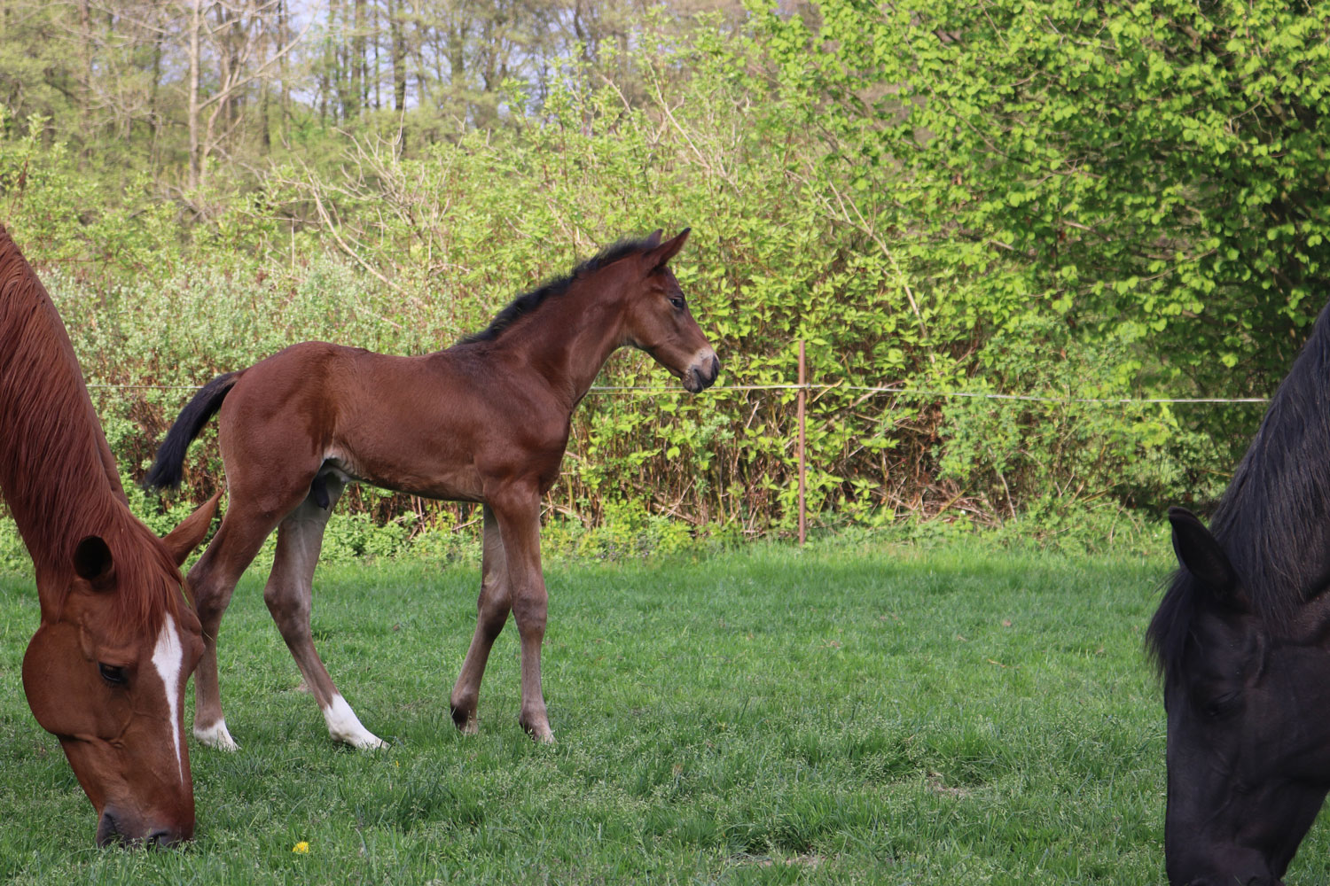 Der Bruder, geb. 2013, hat noch die Chance bekommen, als Hengst aufzuwachsen. Vom Weideaustrieb gibt es ein Video. "Sunday" ist der einzige Fuchs.